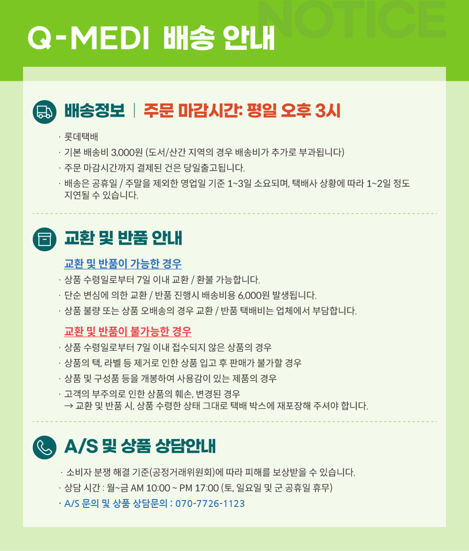 ※ 고객님의 마음이 바뀌어 교환, 반품을 하실 경우 상품반송 비용은 고객님께서 부담하셔야 합니다. (색상 교환, 사이즈 교환 등 포함)